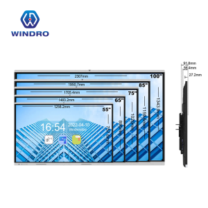 Windro Interactive Whiteboard , which has innovated in size and image quality, Industrial high-performance screen equipped with an A-grade screen, IPS wide angle view, UHD 4K high image quality, low power consumption, and high reliability. In terms of display performance, high resolution, color accuracy, brightness, and contrast.